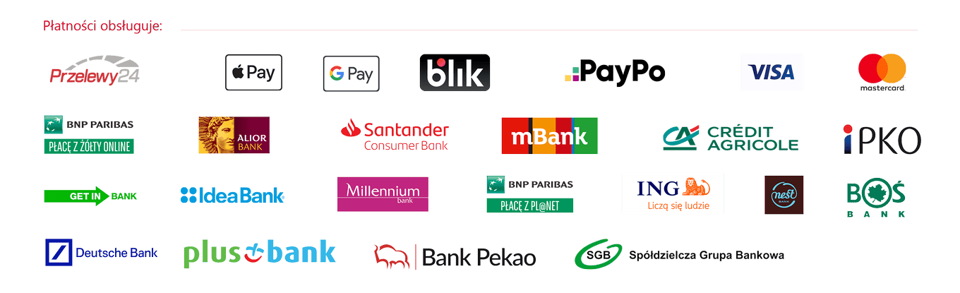Obsługujemy płatności kartami VISA, MasterCard, Maestro – wszystko z zachowaniem najwyższych standardów bezpieczeństwa.